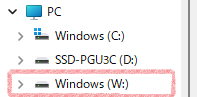 コマンドを実行すると、エクスプローラー上にWドライブが追加され、